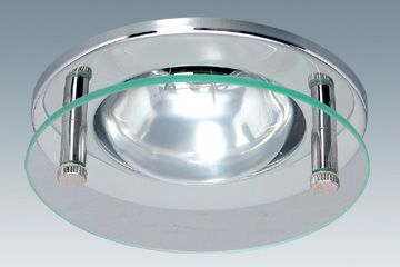 Mains voltage steel recessed down light, with front tempered glass for mains voltage bulb R shape/reflector lamp E27 R80 240V 100W, direct to mains.