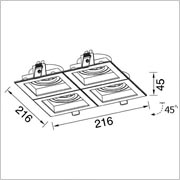 Recessed adjustable modular down light for reflector lamps 50mm GX5.3 12V or GU10 220V. Square frame made of aluminum die cast, rings made of ultra-pure aluminum, finish available in white, black or grey. The most versatile in combination to 2, 3, 4 or more by 1 light with the special connectors.