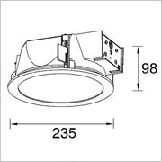 Recessed down light for compact fluorescent lamp G24. Main body made of polycarbonate. Finish available in white, black or grey.