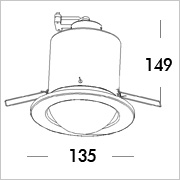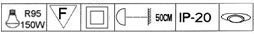 Mains voltage steel recessed down light, for mains voltage bulb R shape/reflector lamp E27 R95 240V 150W, direct to mains.