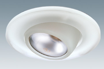 Mains voltage steel recessed down light, with die cast acid decorative glass for mains voltage bulb R shape/reflector lamp E14 R50 240V 60W, direct to mains.