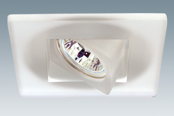 Low voltage steel recessed halogen down light, with die cast acid decorative glass for halogen dichroic lamp GX5.3 12V 50W in conformity with SELV (safety Extra Low Volt).
