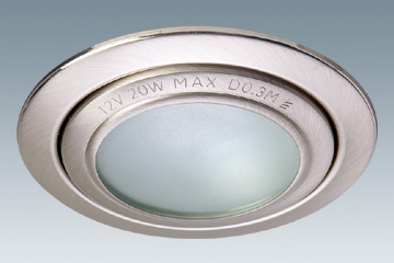 Low voltage Bi-Pin steel cabinet spot light, with tempered glass for halogen lamp Bi-Pin G4 12V 20W in conformity with SELV (safety Extra Low Volt).