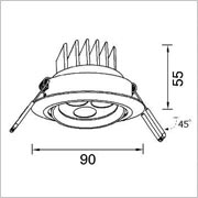 High power LED recessed down light, operated by constant current driver. Main body made of ultra-pure aluminum. Remote driver included.