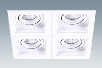 Recessed adjustable modular down light for reflector lamps 50mm GX5.3 12V or GU10 220V. Square frame made of aluminum die cast, rings made of ultra-pure aluminum, finish available in white, black or grey. The most versatile in combination to 2, 3, 4 or more by 1 light with the special connectors.