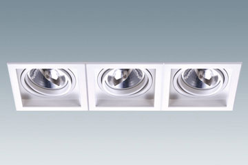 Recessed adjustable modular down light for reflector lamps 111mm G53. Square frame made of aluminum die cast, rings made of ultra-pure aluminum, finish available in white, black or grey. The most versatile in combination to 2, 3, 4 or more by 1 light with the special connectors.
