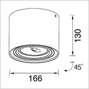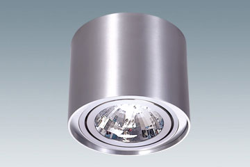 Surface adjustable down light for reflector lamps 111mm G53. Main body made of ultra-pure aluminum, finish available in white, black or anodized aluminum brush. Built-in electronic gear not included.