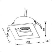 Recessed adjustable down light for reflector lamps 50mm GX5.3 12V or GU10 220V. Main body made of steel. Finish inside matt black colour, exterior frame available in white, black, grey, satin nickel, or matt chrome etc.