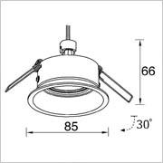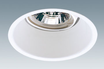 Low glare effect recessed adjustable down light for reflector lamps 50mm GX5.3 12V or GU10 220V. Exterior frame made of aluminum die cast, inner rings made of ultra-pure aluminum, finish available in white, black or grey.
