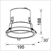 Low glare effect recessed down light for reflector lamps 111mm G53. Main body made of steel. Finish available in white, black or grey.