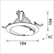 Recessed adjustable down light for metal halided lamp RX7s 70W or 150W. Main body made of aluminum die cast. Finish available in white, satin nickel, or matt chrome etc.