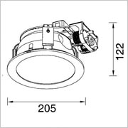 Recessed down light for compact fluorescent lamp G24 or E27. Main body made of ultra-pure aluminum. Finish available in white, black or anodized aluminum brush.
