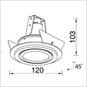Recessed down light for metal halided lamp G8.5. Main body made of ultra-pure aluminum. Finish available in white, black, grey or anodized aluminum brush.