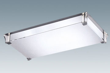 Surface glass ceiling light for compact fluorescent lamp PLL 2G11 2x36W. Main body made of glass, aluminum die cast and steel. Finish available in white, chrome or satin nickel.